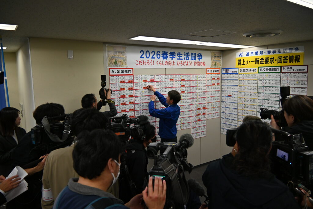 この日は多くの報道陣が取材に訪れ、製造業の集積地である愛知県の春闘が注目されました。