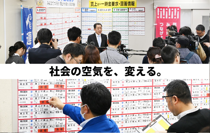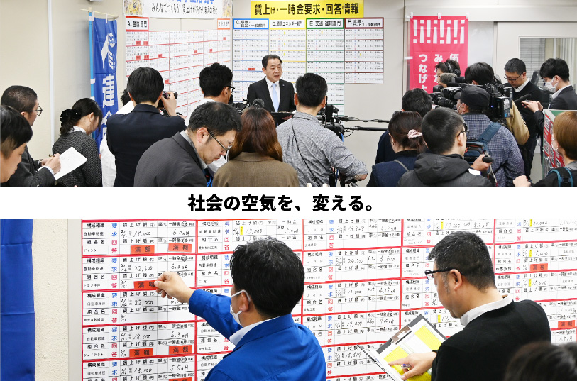 日本最大の労働組合である「連合」が、社会全体のモノサシ(目安)として決定・発表します。これが、中小企業も含めた日本全体の基準になります。