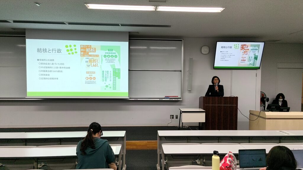 今回の講義では「公務労働とは何か」「看護師という職業の実際」「病院での働き方」「働き方改革と組合活動」について、現場経験をもとにお話しいただきました。