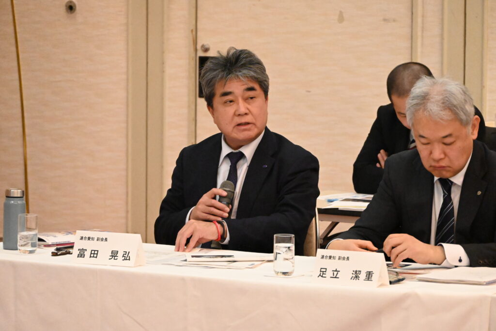 連合愛知からは、労働力不足により生じている課題と対応について、情報労連および私鉄労連より提起があり、働く者を取り巻く環境について愛知県経営者協会と共有しました。また、愛知県経営者協会からは、生成AIを活用した生産性向上の取り組み事例が紹介されました。